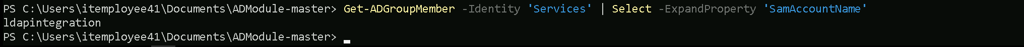 Get-ADGroupMember -Identity 'Services' | Select -ExpandProperty 'SamAccountName’