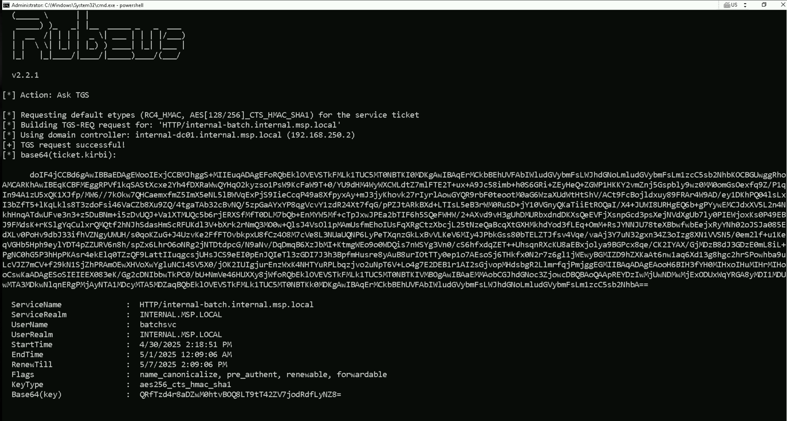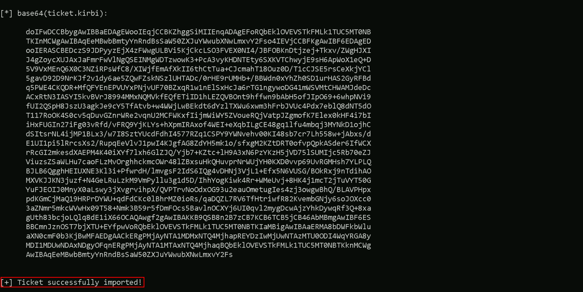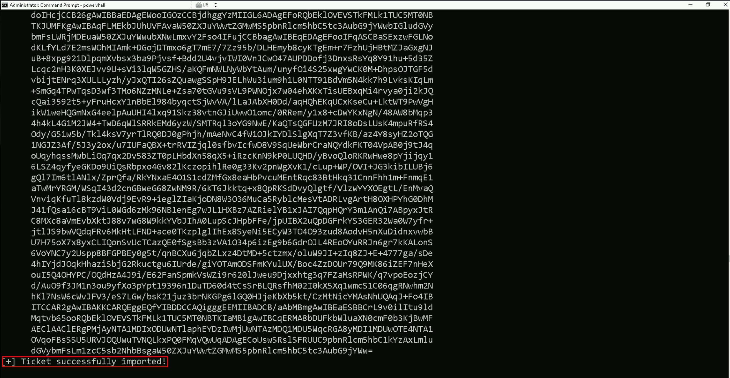 Now that we were able to access MSP-SQLREPORT as NT AUTHORITY\SYSTEM we can request Administrator’s TGT and import it into our current session.