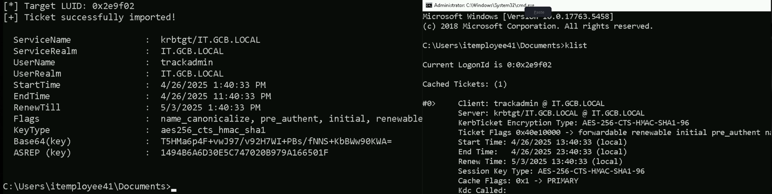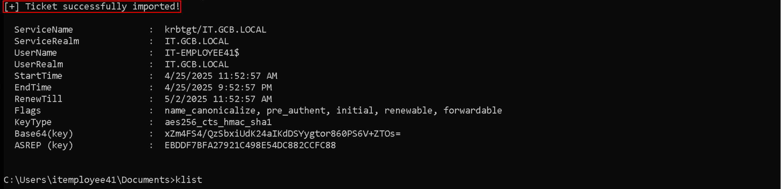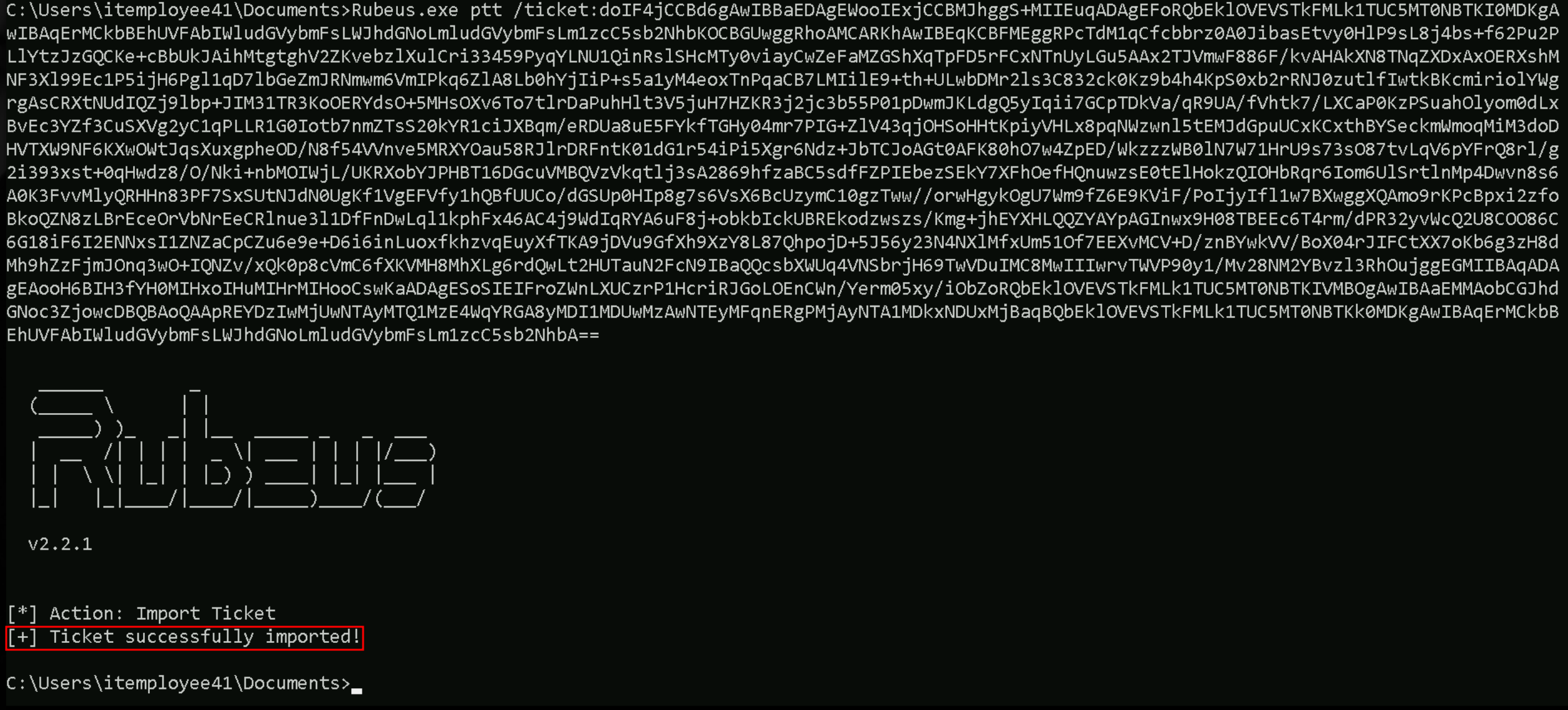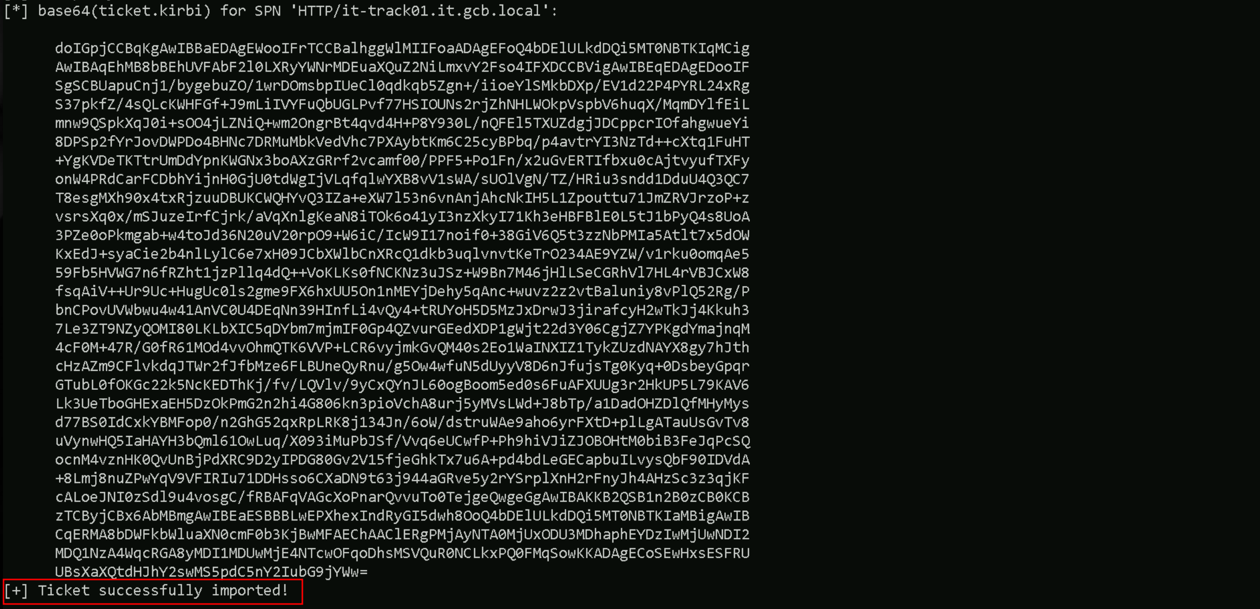 Now that we were able to access MSP-SQLREPORT as NT AUTHORITY\SYSTEM we can request Administrator’s TGT and import it into our current session.