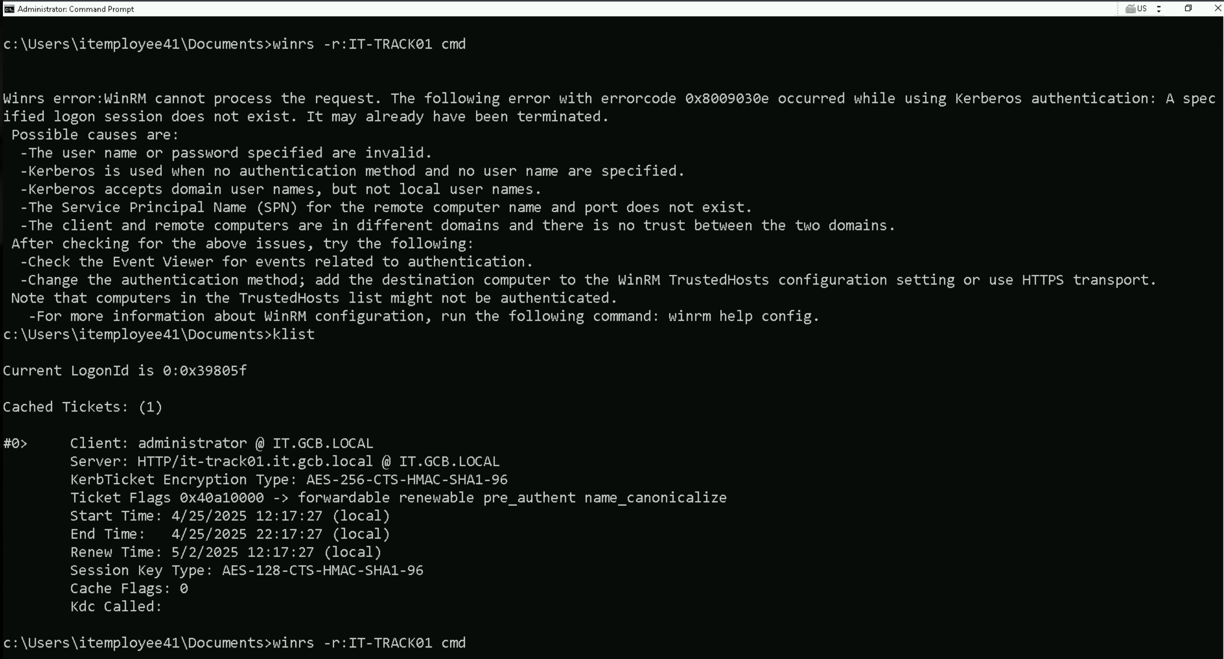 In essence, our delegation permissions are in place, but since the HTTP SPN isn’t actively registered on the target, we needed to manually specify it to make things like WinRM and PSRemoting succeed.