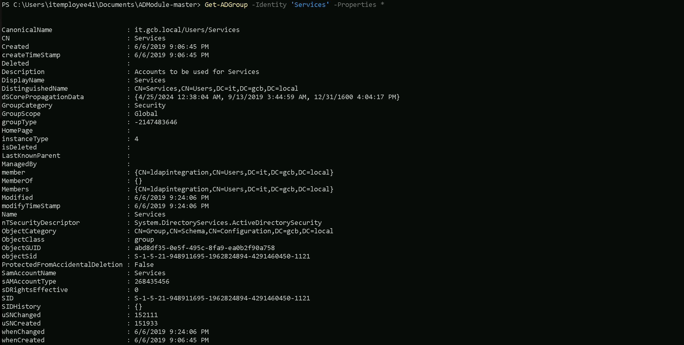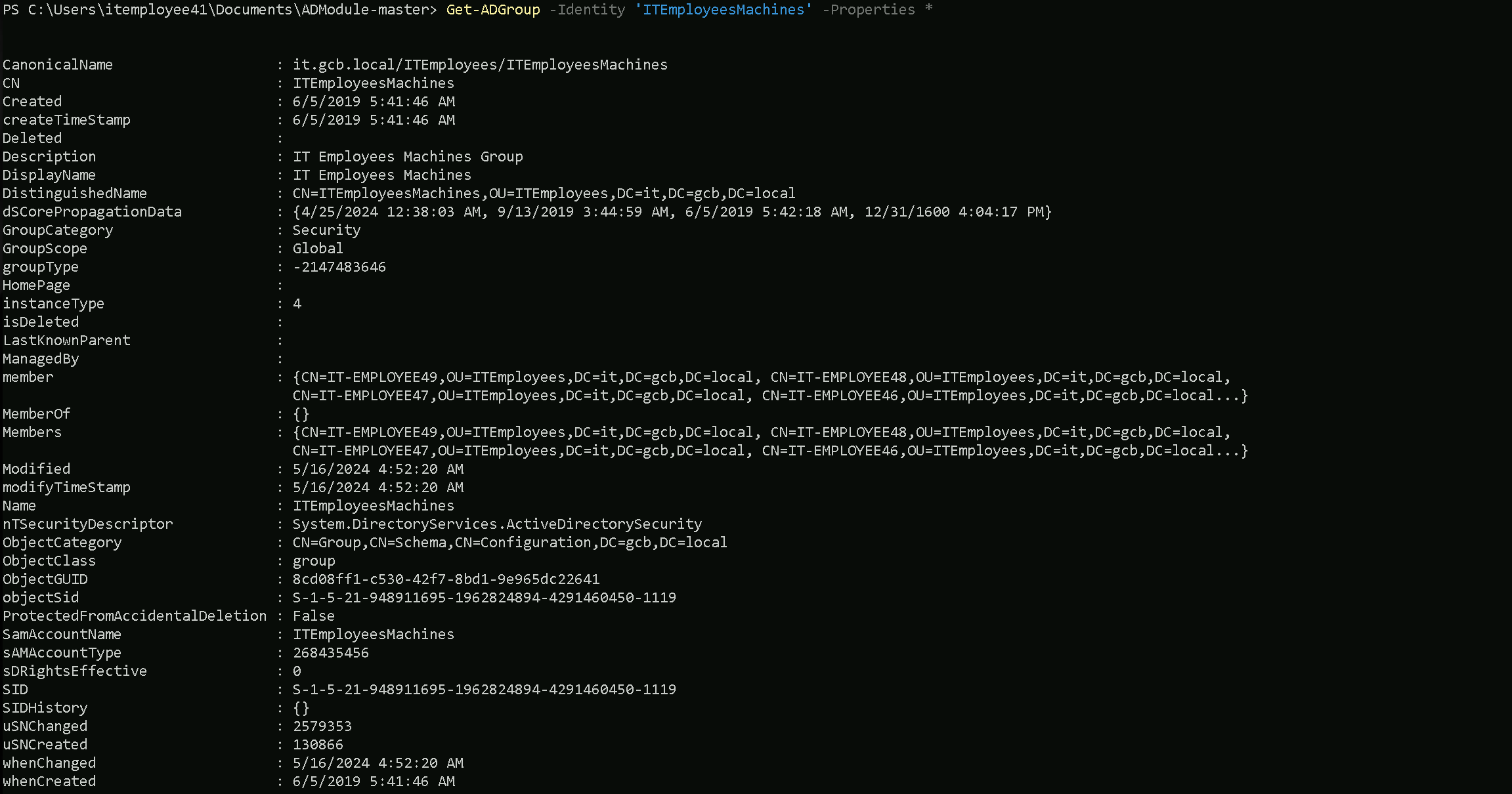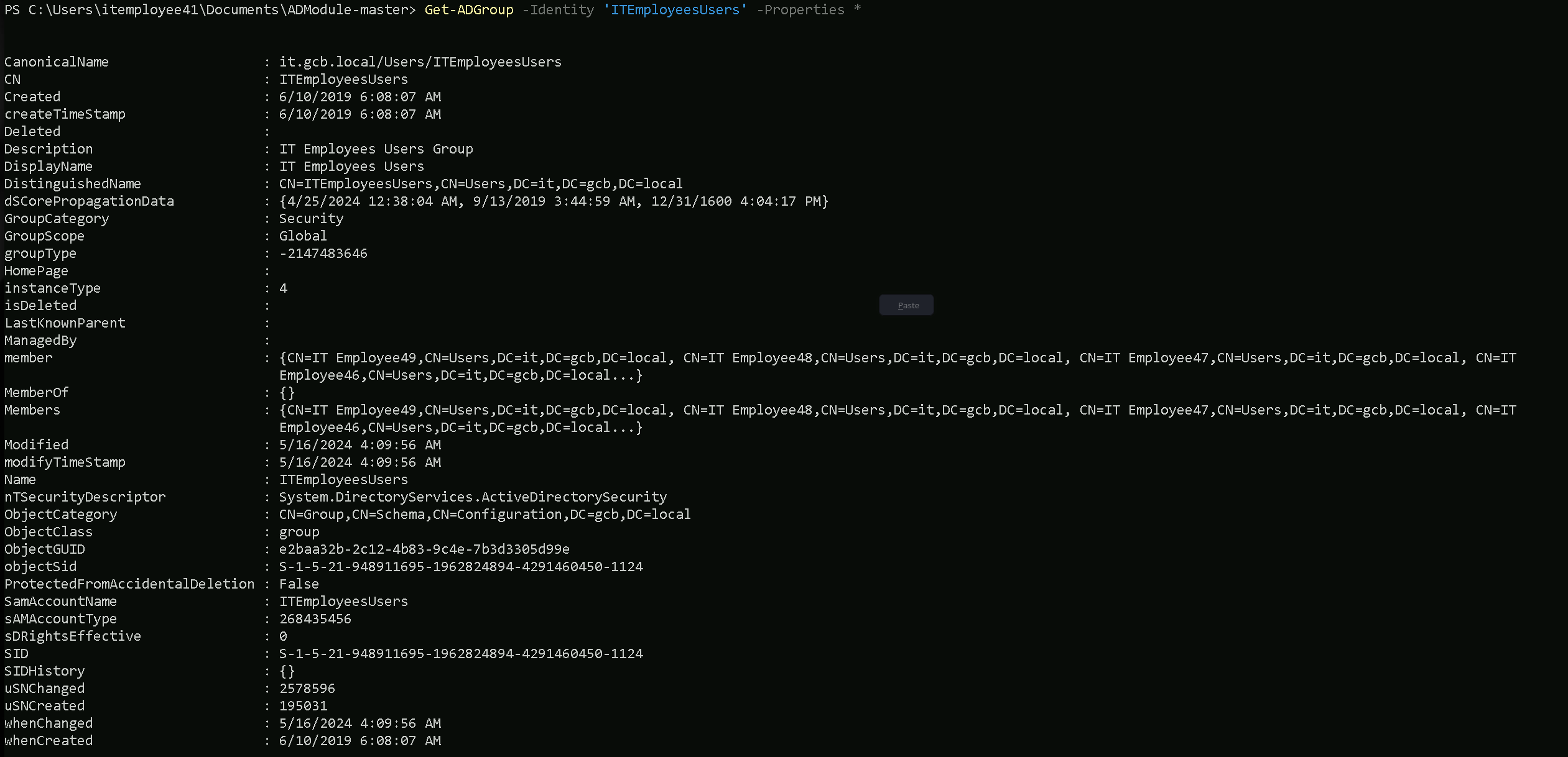 Get-ADGroup -Identity 'ITEmployeesUsers' -Properties *