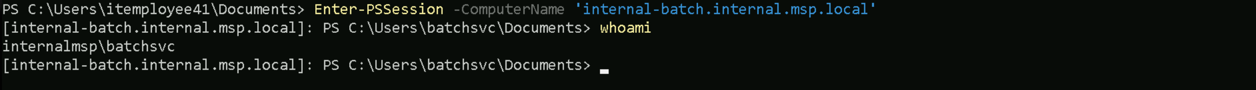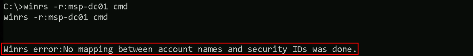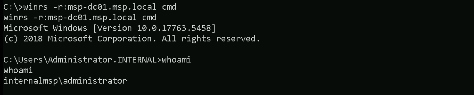 We can now remotely access msp.local Domain Controller using WinRS or PSRemoting.