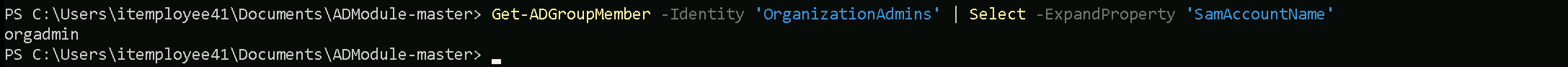 Get-ADGroupMember -Identity 'OrganizationAdmins' | Select -ExpandProperty 'SamAccountName'