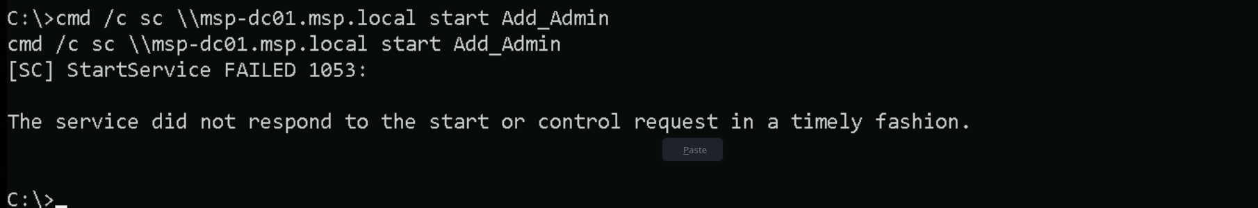 cmd /c sc \\msp-dc01.msp.local start Add_Admin