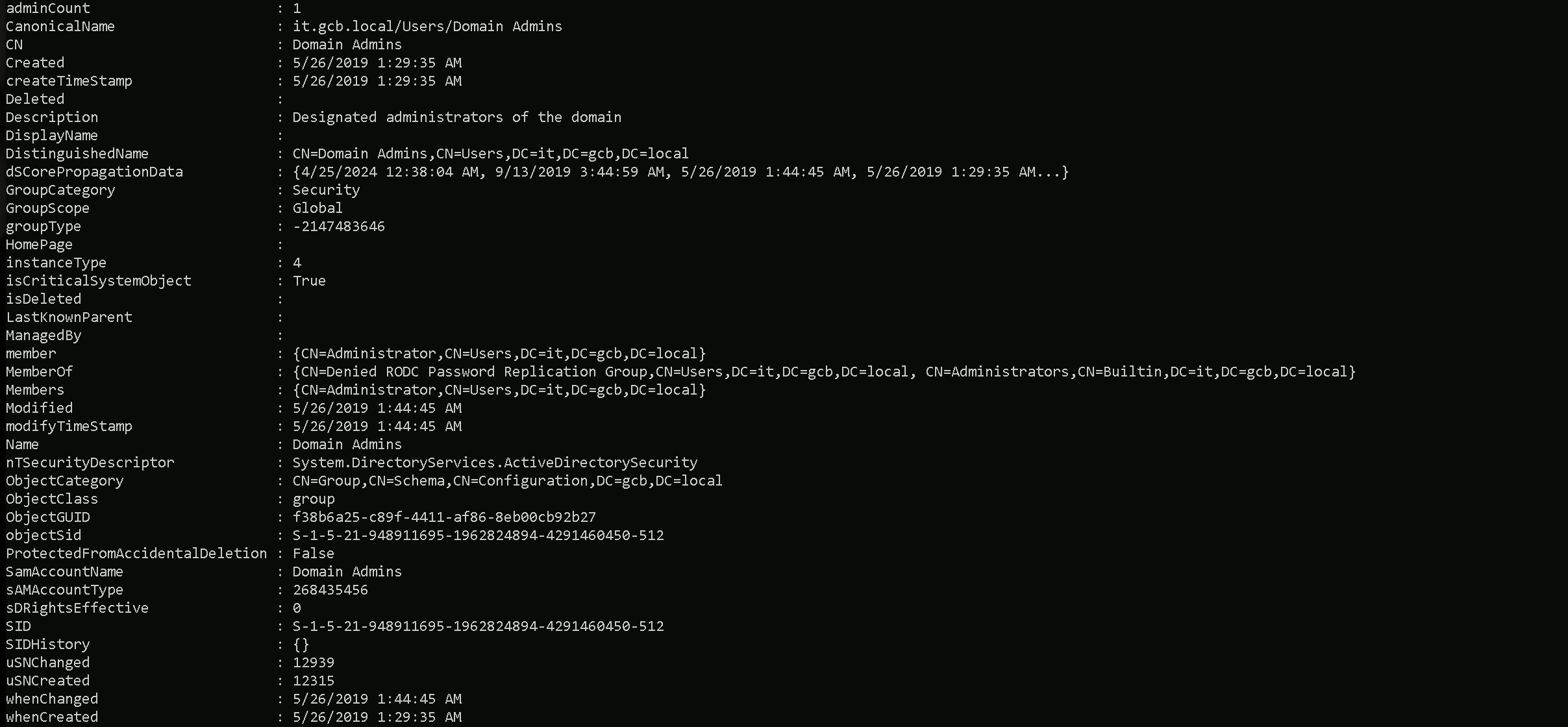Get-ADGroup -Identity 'Domain Admins' -Properties *