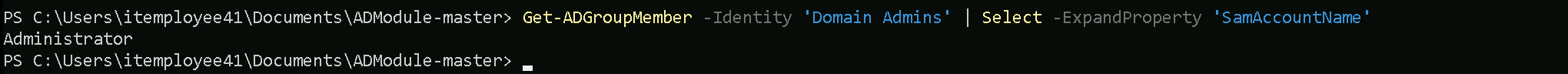 Get-ADGroupMember -Identity 'Domain Admins' | Select -ExpandProperty 'SamAccountName'