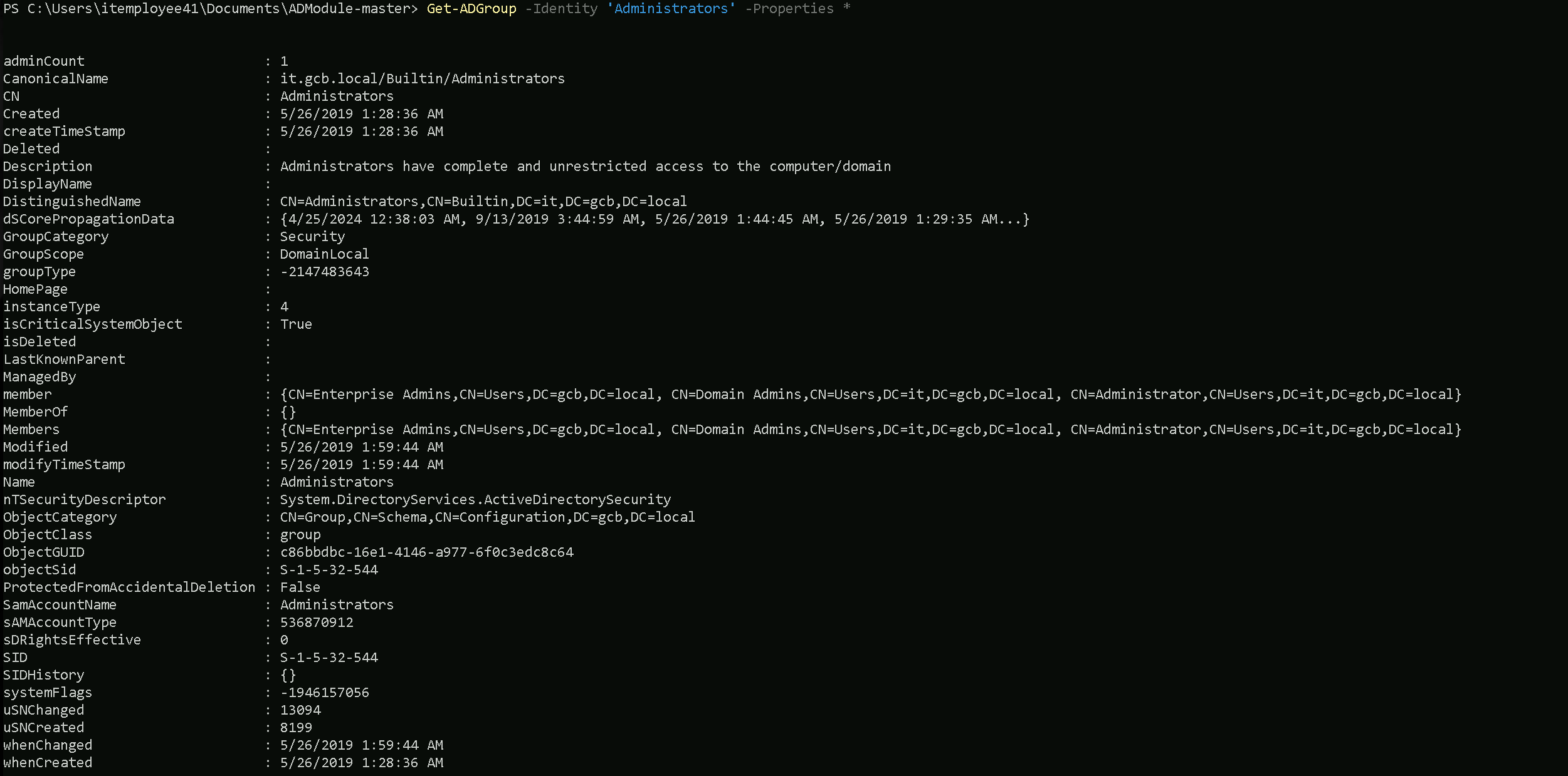 Get-ADGroup -Identity 'Administrators' -Properties *