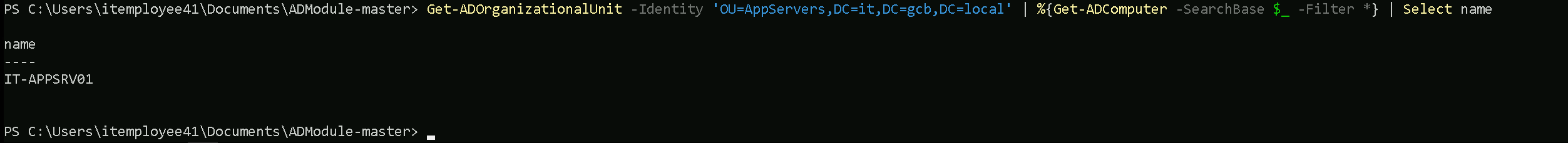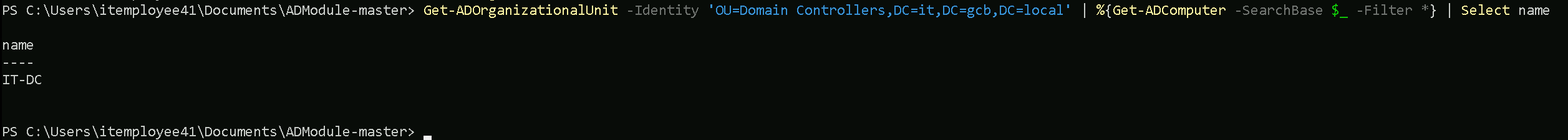 Let’s use Domain Controllers OU and list all the computers inside this OU.