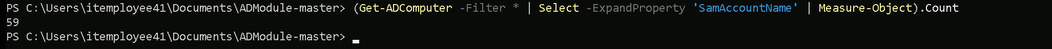 (Get-ADComputer -Filter * | Select -ExpandProperty 'SamAccountName' | Measure-Object).Count
