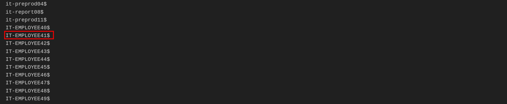 IT-DC$ IT-PREPROD$ IT-SQLSRV02$ IT-APPSRV01$ IT-TRACK01$ IT-EMPLOYEETEST$ it-srv10$ it-db07$ it-appsrv05$ it-dc07$ it-sqlsrv06$ it-db02$ it-prod02$ it-report02$ it-prod11$ it-prod04$ it-file07$ it-srv09$ it-dc04$ it-srv08$ it-dc02$ it-prod03$ it-db11$ it-prod09$ it-report07$ it-file05$ it-dc10$ it-appsrv04$ it-uat03$ it-db04$ it-uat05$ it-preprod05$ it-uat02$ it-uat06$ it-appsrv07$ it-track02$ it-prod05$ it-preprod09$ it-report04$ it-srv07$ it-uat10$ it-db09$ it-preprod02$ it-uat08$ it-srv03$ it-dc11$ it-preprod04$ it-report08$ it-preprod11$ IT-EMPLOYEE40$ IT-EMPLOYEE41$ IT-EMPLOYEE42$ IT-EMPLOYEE43$ IT-EMPLOYEE44$ IT-EMPLOYEE45$ IT-EMPLOYEE46$ IT-EMPLOYEE47$ IT-EMPLOYEE48$ IT-EMPLOYEE49$