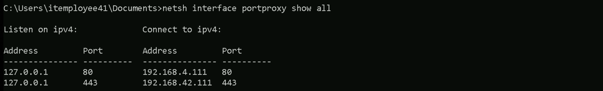 netsh interface portproxy add v4tov4 listenport=443 listenaddress=127.0.0.1 connectport=443 connectaddress=192.168.4.111