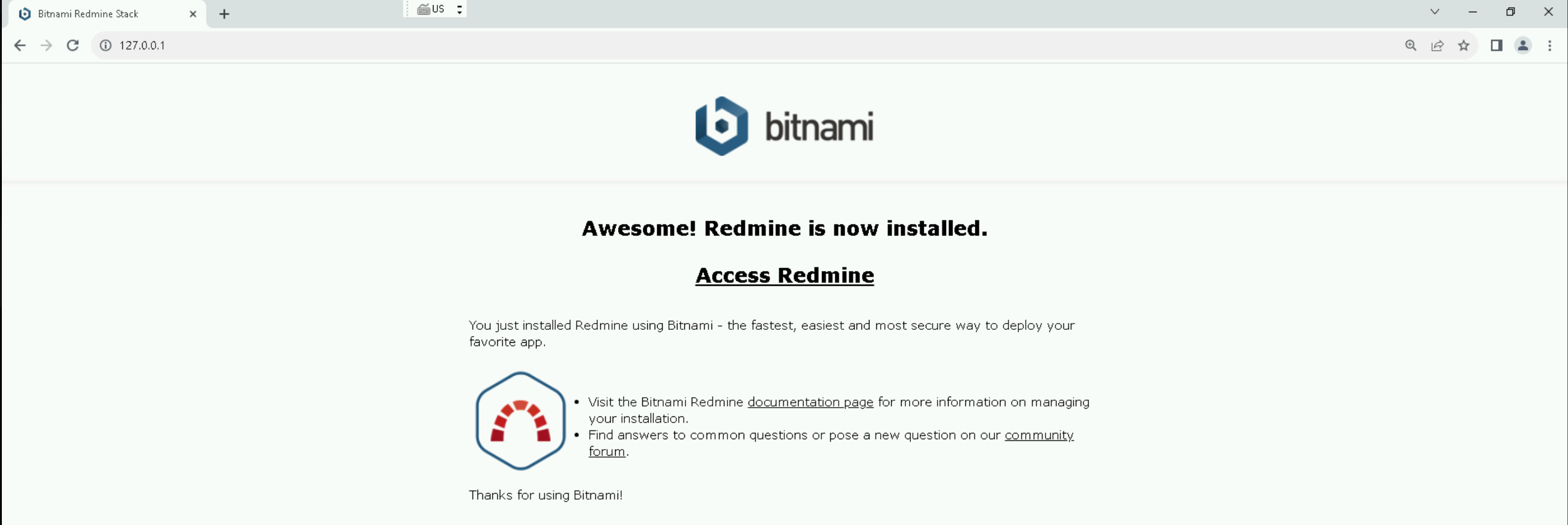 After doing the portforwarding, when we try to access the service on TPC/80 with browser, we see that we do have Bitnami installed.