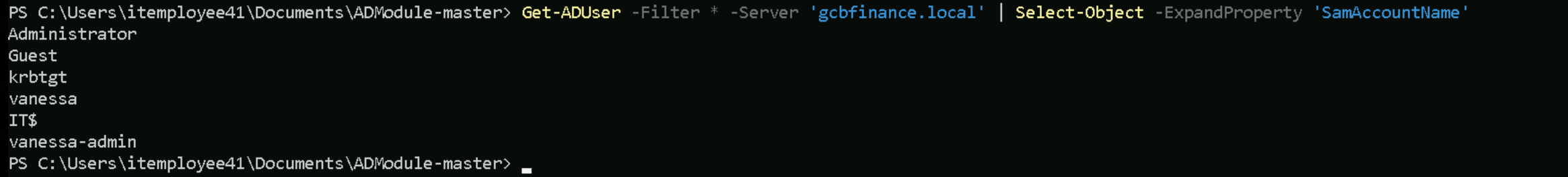 We will start by importing ADModule into the Finance-Vanessa host, our enumeration will be using ADModule.