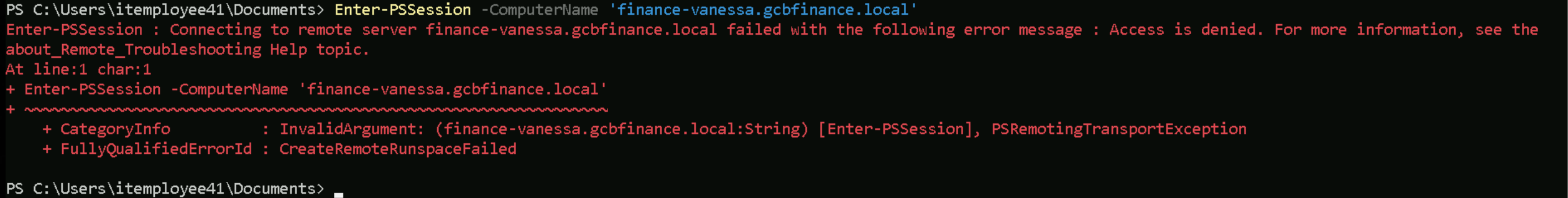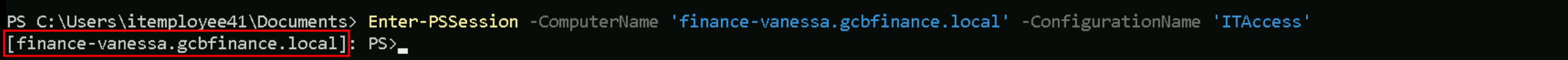 Enter-PSSession -ComputerName 'finance-vanessa.gcbfinance.local' -ConfigurationName 'ITAccess'