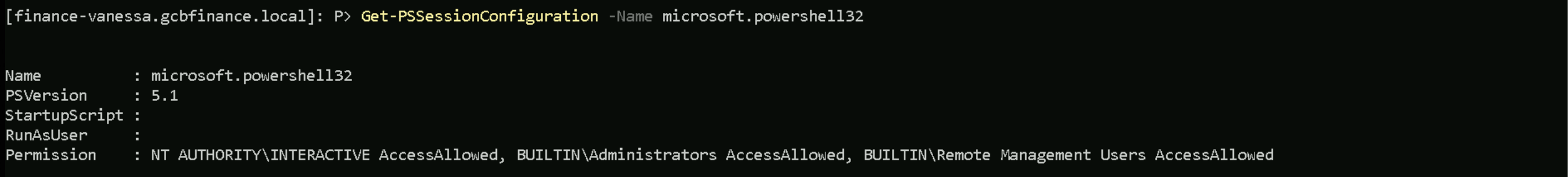 Get-PSSessionConfiguration -Name microsoft.powershell32