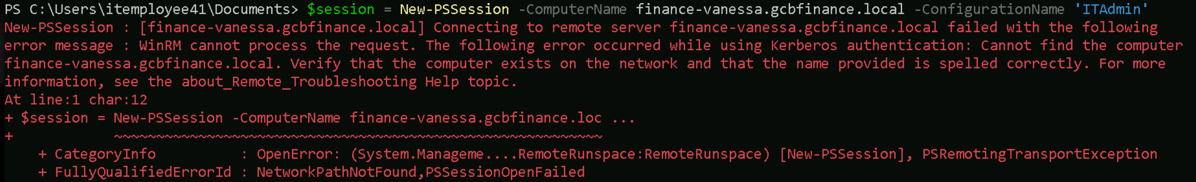 $session = New-PSSession -ComputerName finance-vanessa.gcbfinance.local -ConfigurationName 'ITAccess'