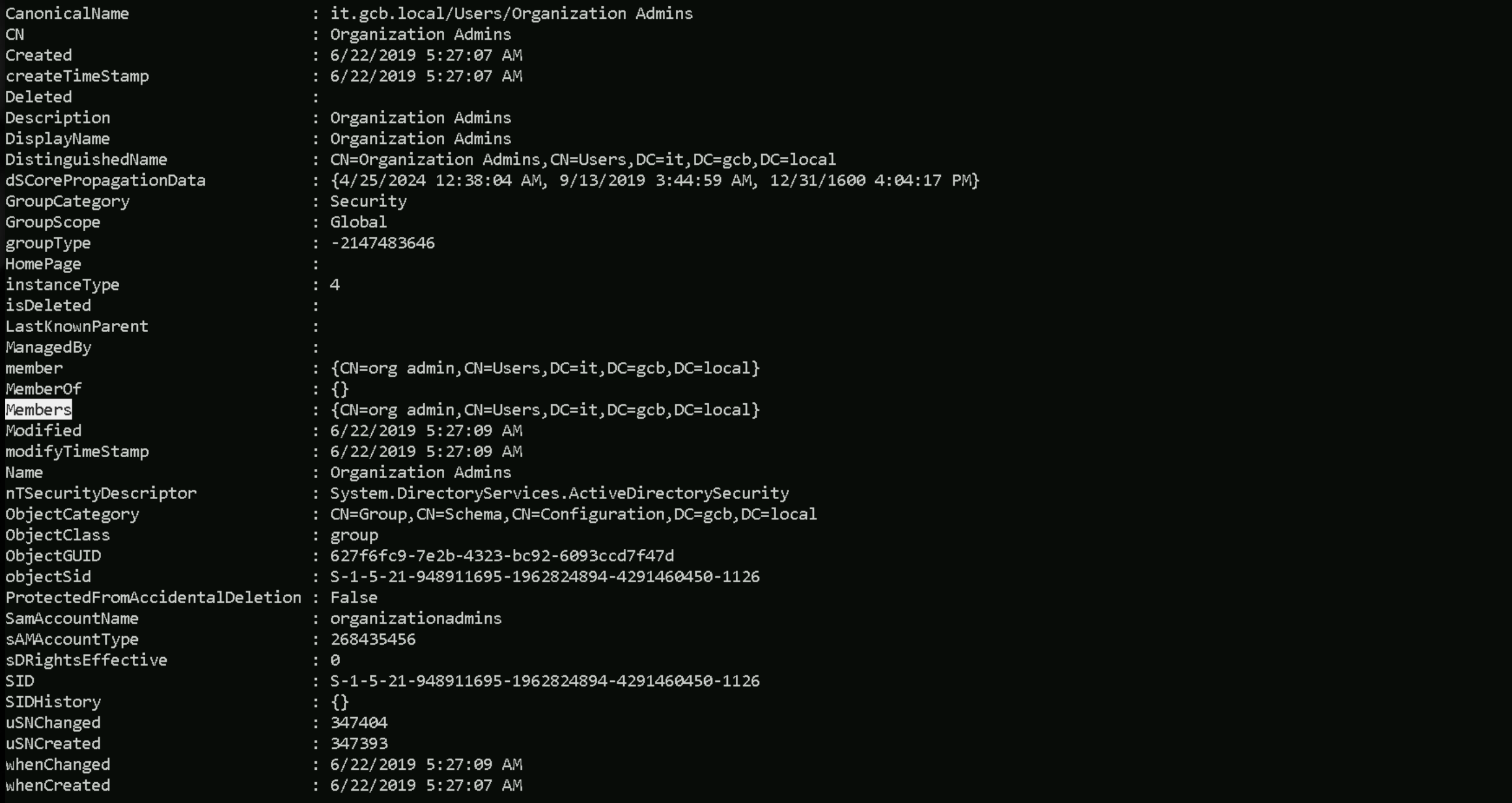 Get-ADGroup -Identity 'organizationadmins' -Properties *