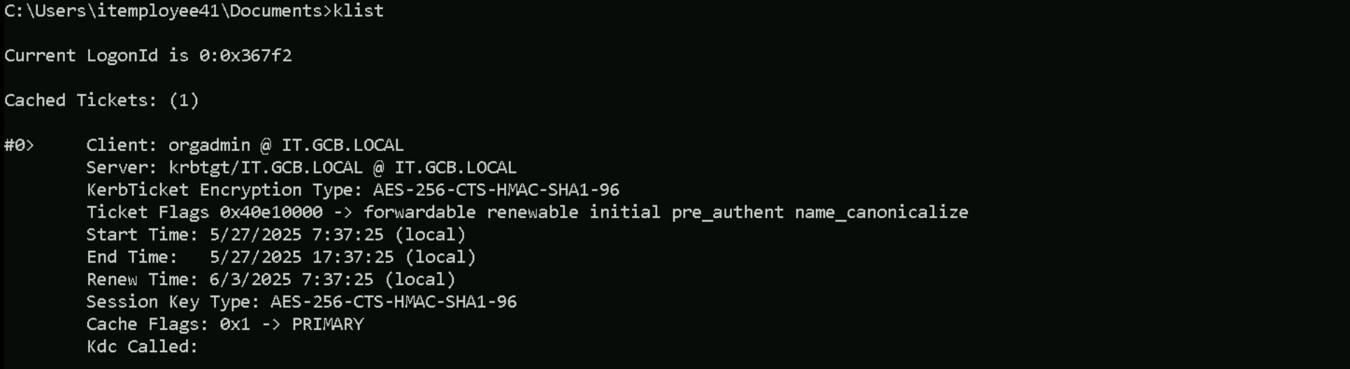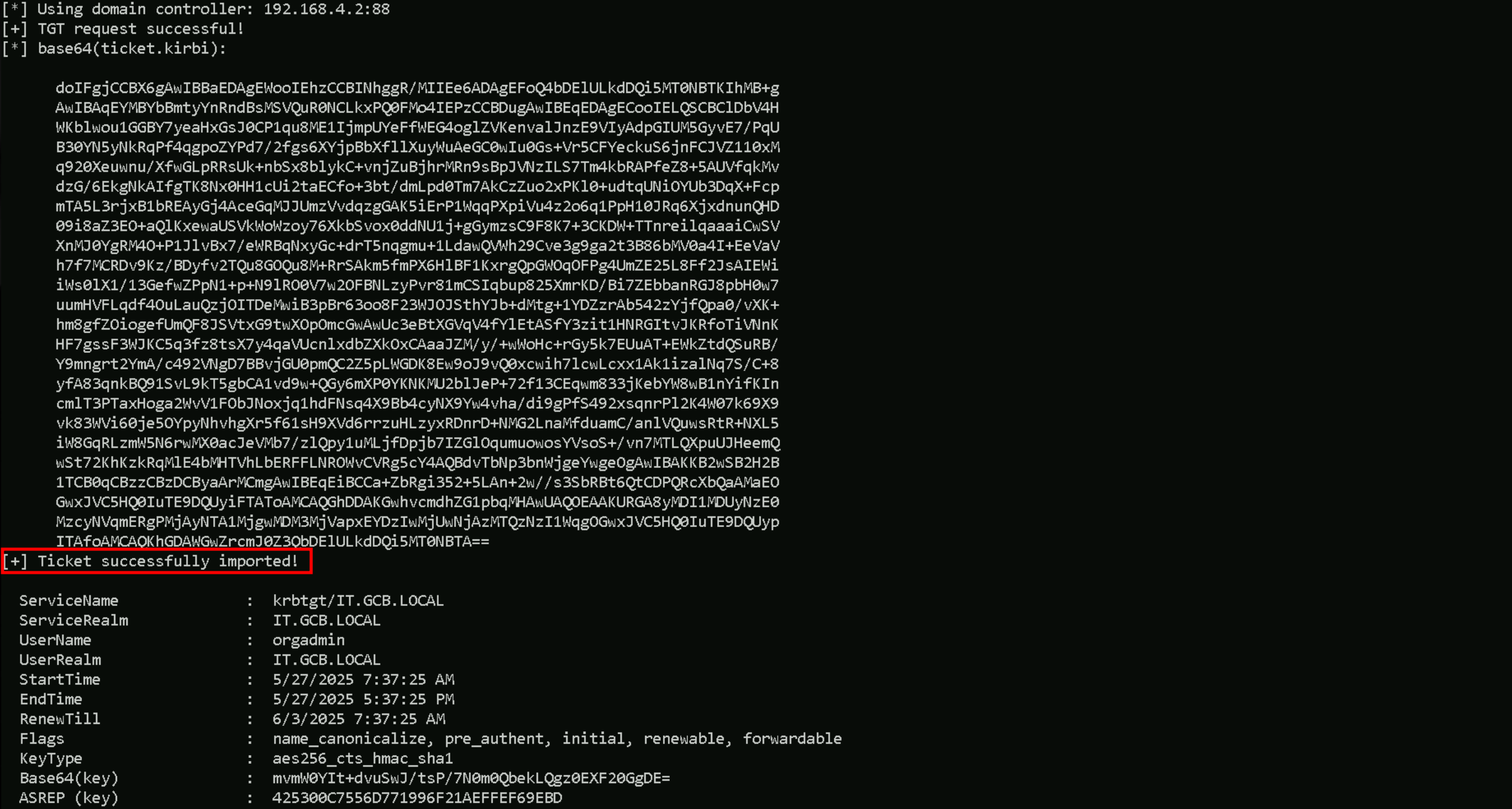 Let’s now leverage our privileges to orgadmin user, by requesting his TGT and Injecting it into our current session