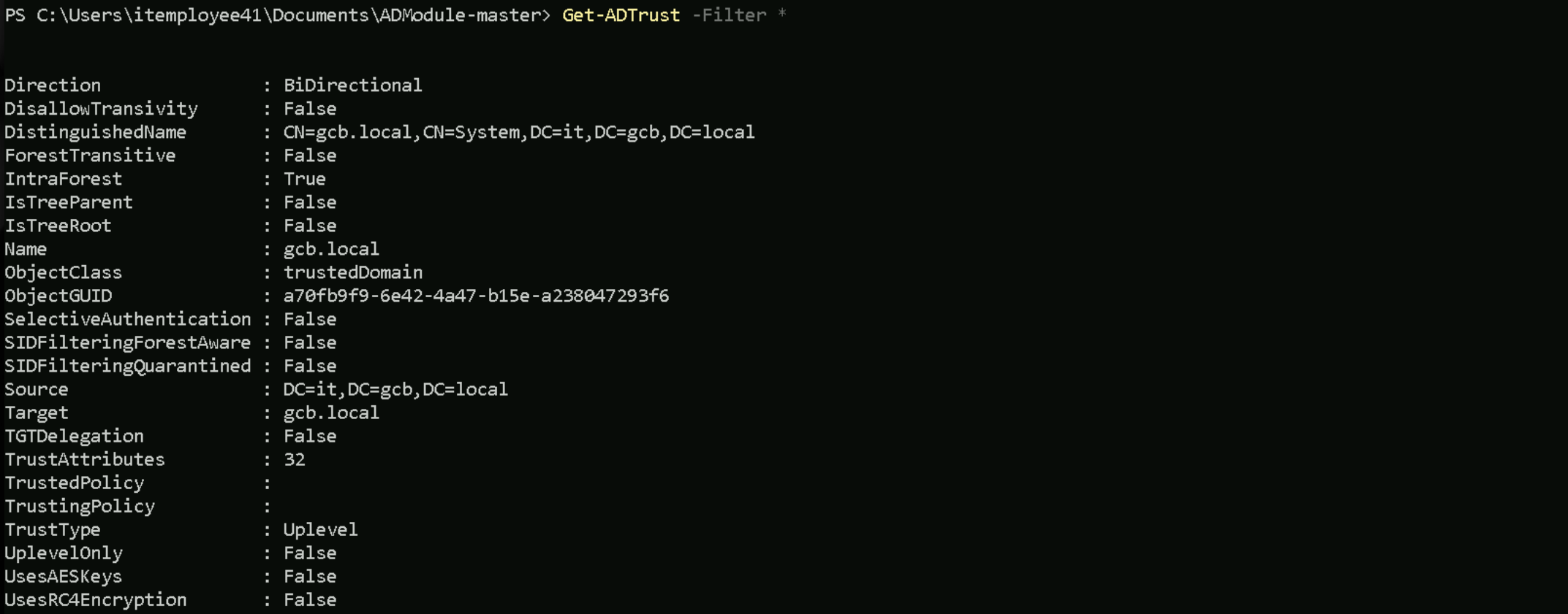 Let’s start by enumerating both Domain’s SIDs first using ADModule.