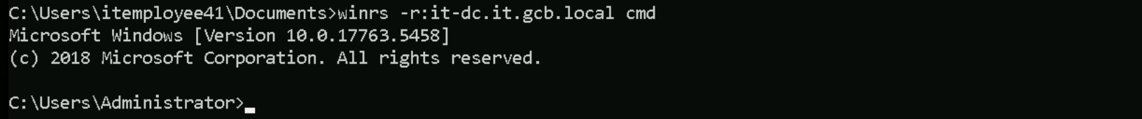 We use Rubeus to create a Golden Ticket for the administrator account in the child domain (it.gcb.local). However, by injecting the Enterprise Admins SID from the forest root, we make the forged TGT look like it belongs to an Enterprise Admin in the entire forest. When this ticket is used, the forest root domain controller trusts it and grants privileged access to the entire AD forest.