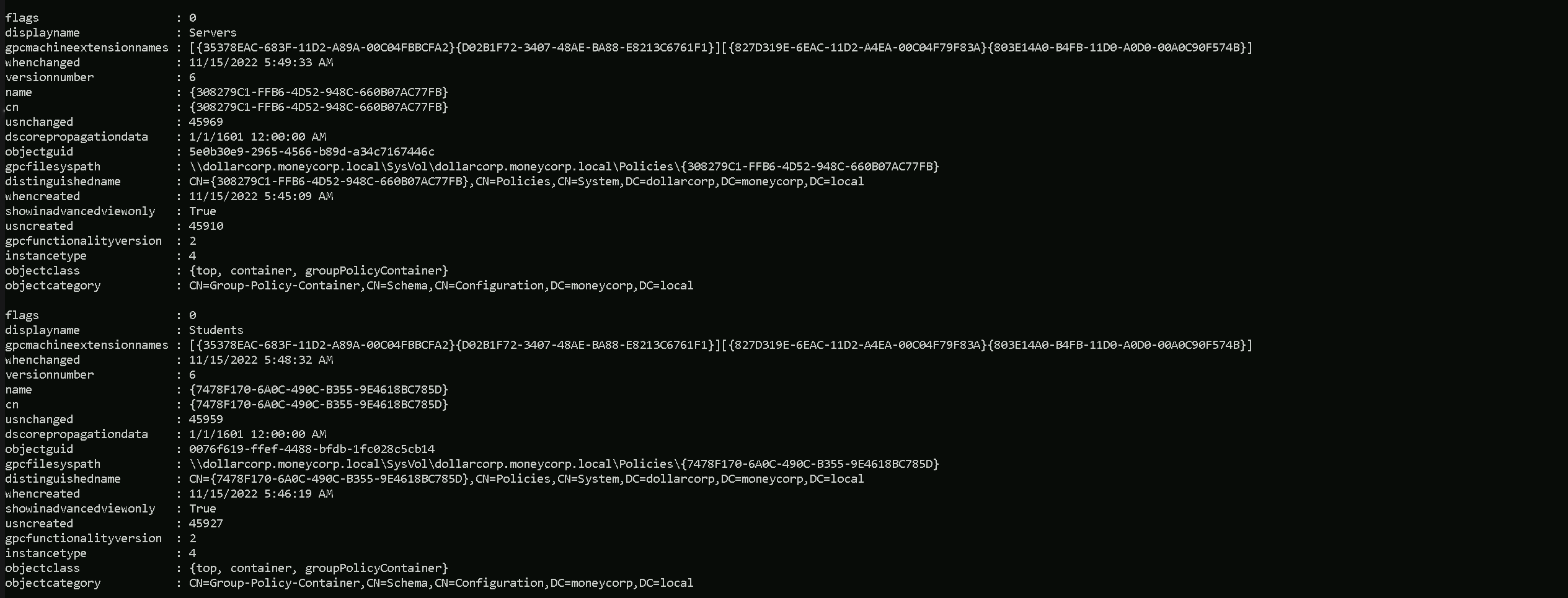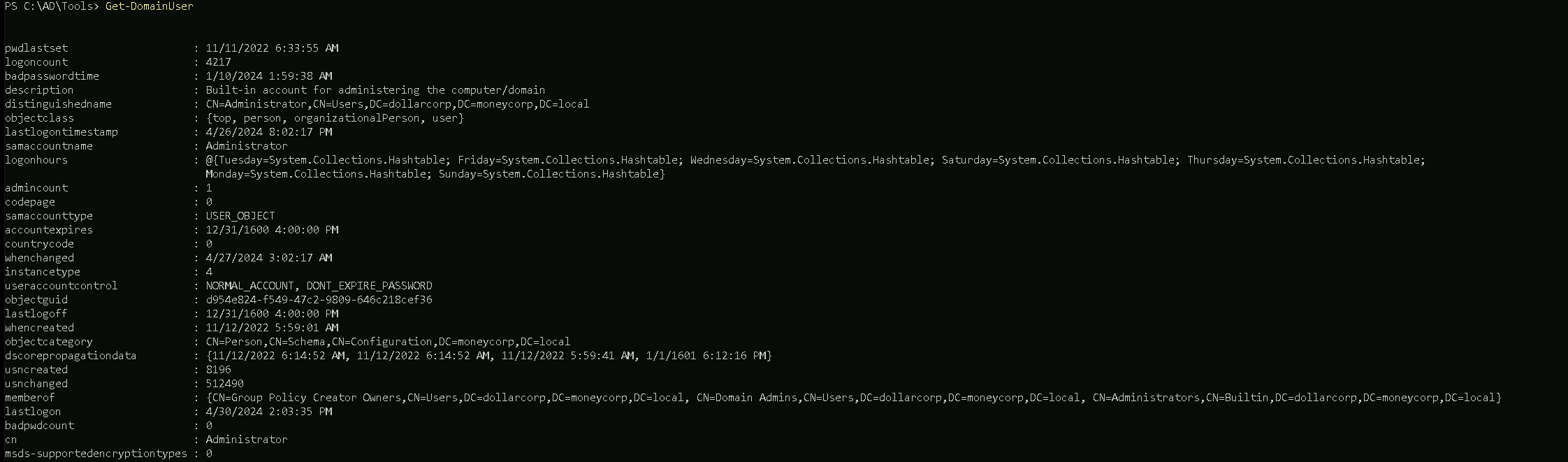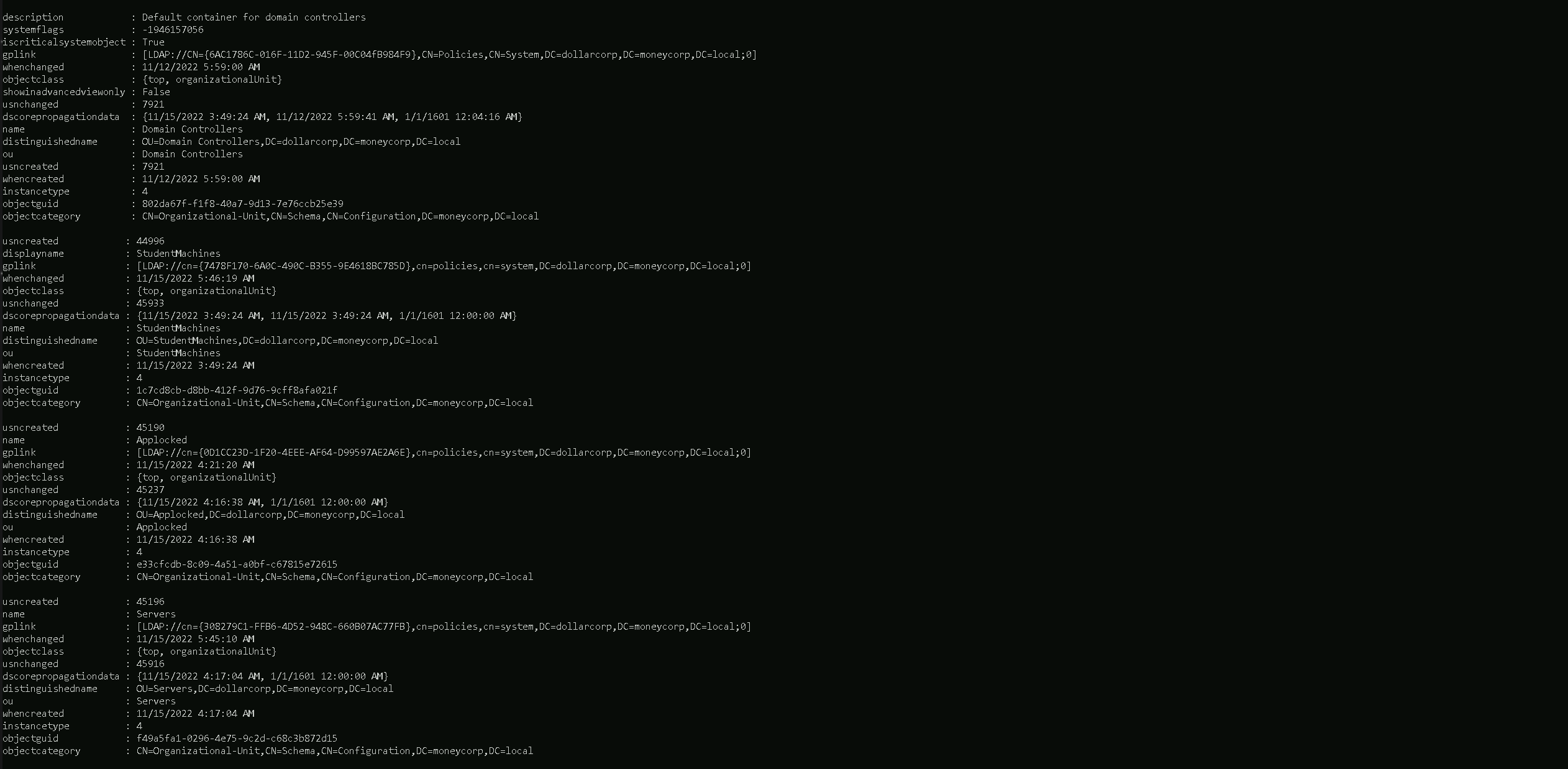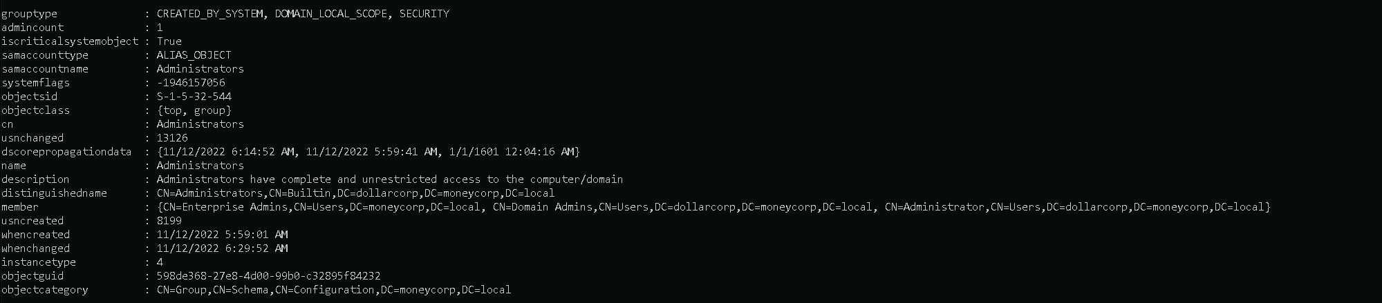 Enterprise Domainsgroup.Get-ADGroupMember -Identify "Enterprise Domains" -Server moneycorp.local