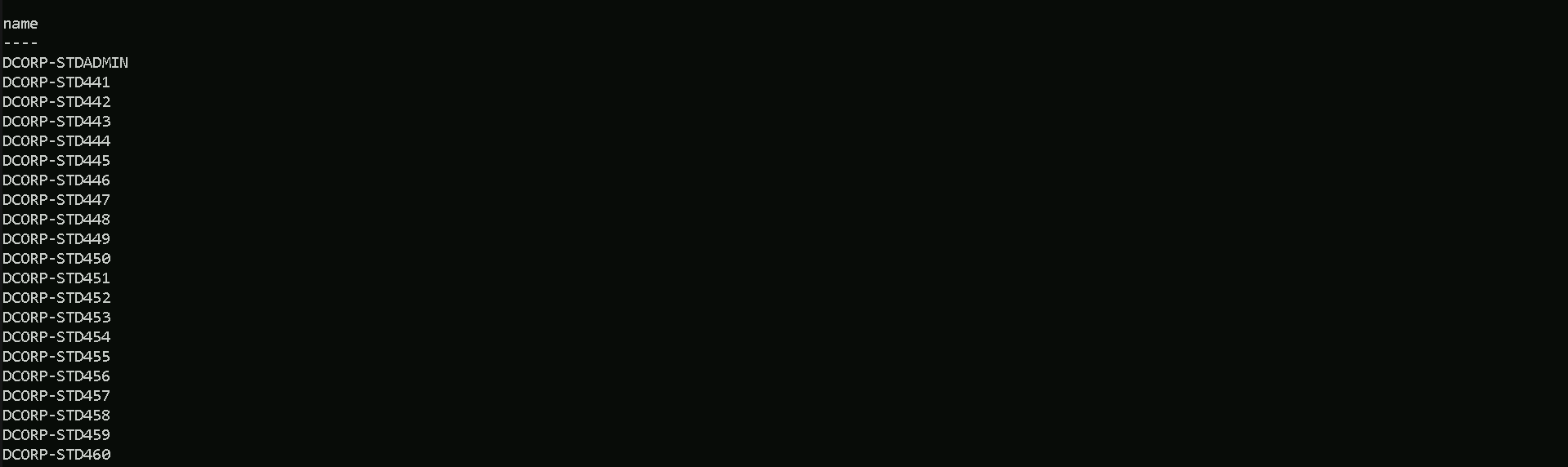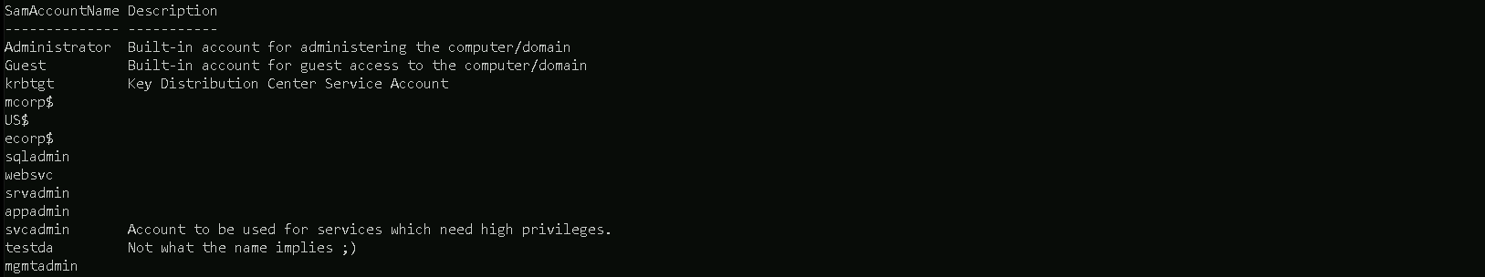 The command issued above will bring us all the domain accounts belonging to the