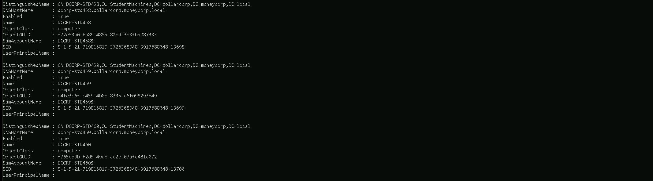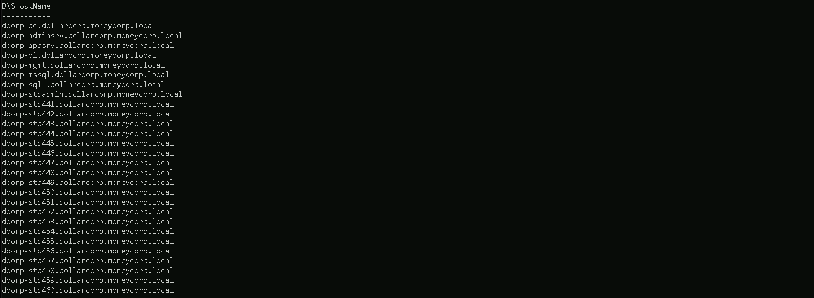 samaccountname, we can see that we have all the AD usernames on our output.Domain Computers