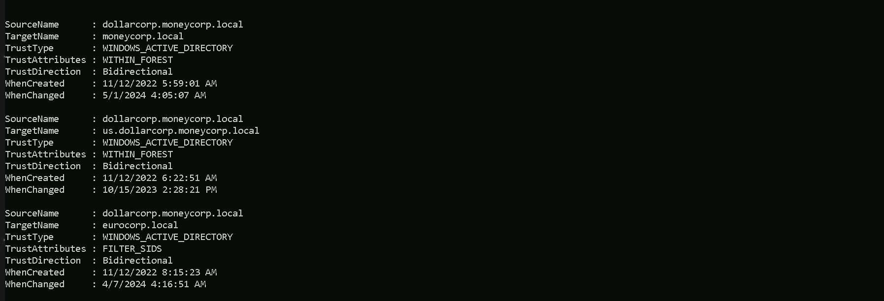 us.dollarcorp.moneycorp.localNow we can also enumerate and map all the Trusts domain dollarcorp.moneycorp.local contains.