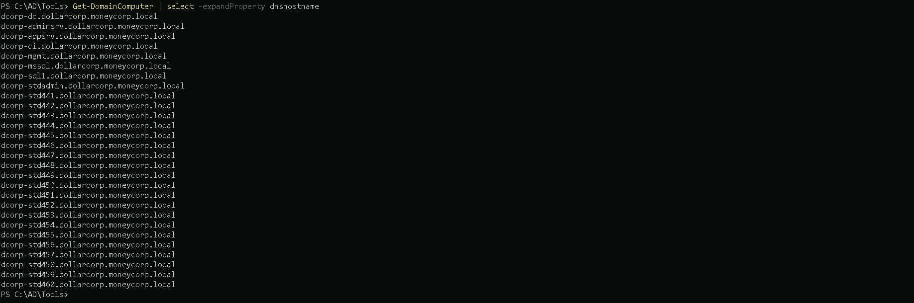 We can filter this as well by using the same we did when enumerating users.Get-DomainComputer | select -ExpandProperty dnshostname