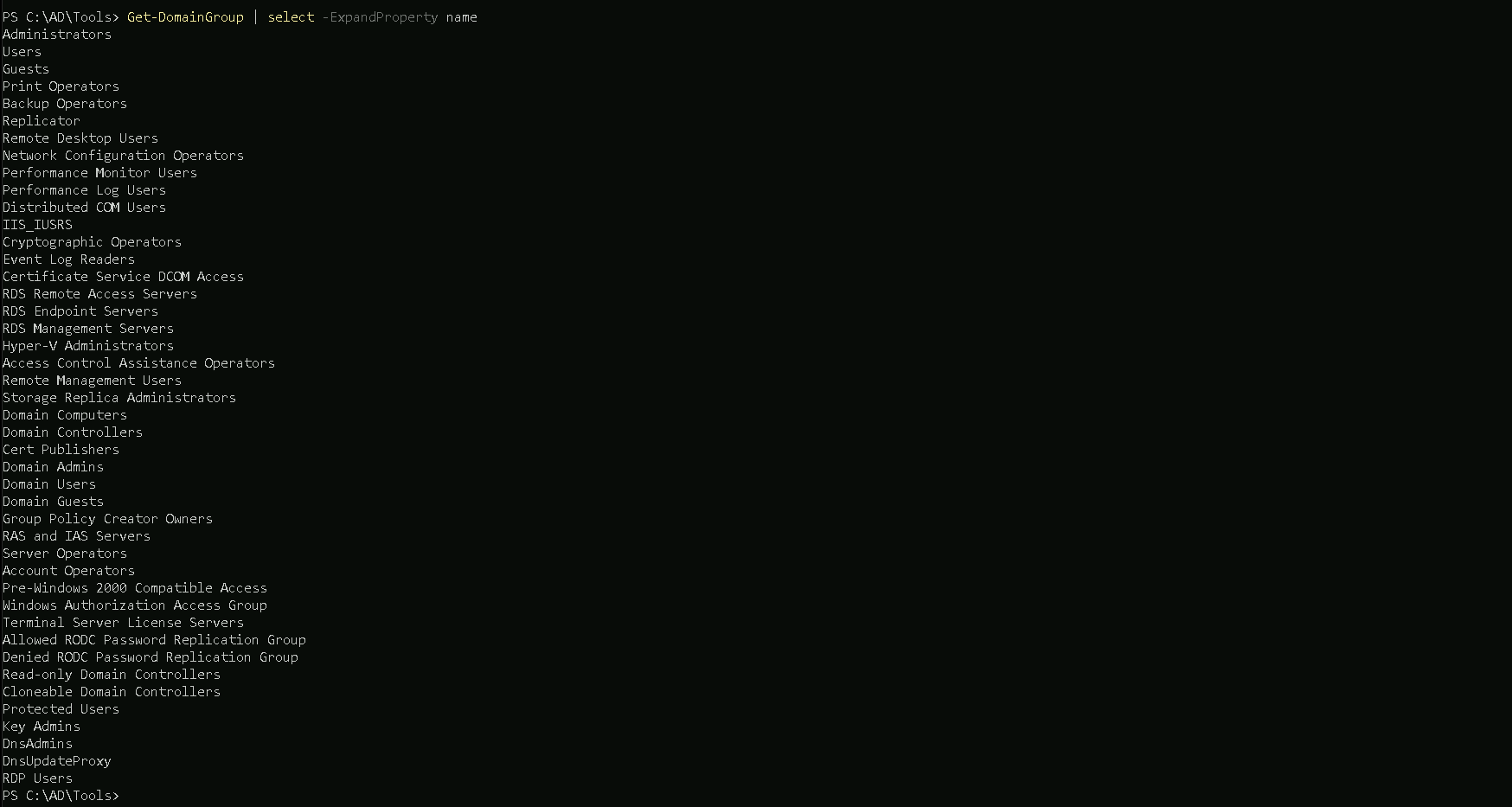 We can also filter this by bringing us only the domain group names instead of all its properties.