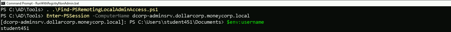 Enter-PSSession -ComputerName dcorp-adminsrv.dollarcorp.moneycorp.local