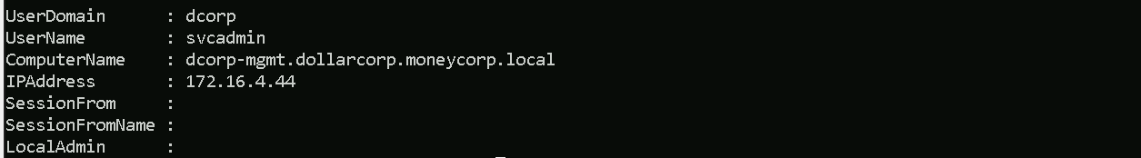 Above screenshot shows us that we are in the machine dcorp-mgmt and that we are dcorp\ciadmin
