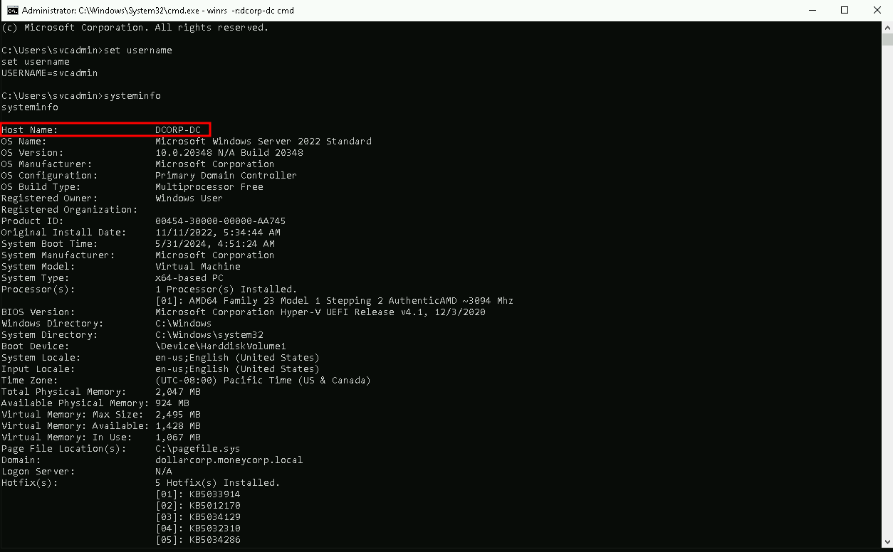 Now that we were able to find a machine in the domain with a Domain Admin session logged in, we can abuse it using WinRS(Windows Remote Shell) or PowerShell Remoting.