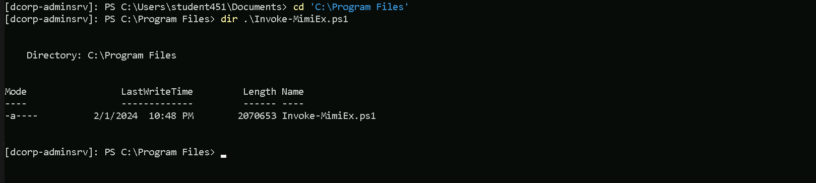 As we can see above, we do have the confirmation that we were able to copy Loader.exe to the target machine dcorp-mgmt.