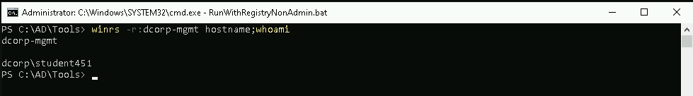 Above screenshot shows us that we are in the machine dcorp-mgmt and that we are dcorp\student451