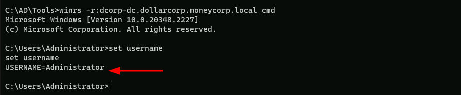 winrs -r:dcorp-dc.dollarcorp.moneycorp.local cmd
