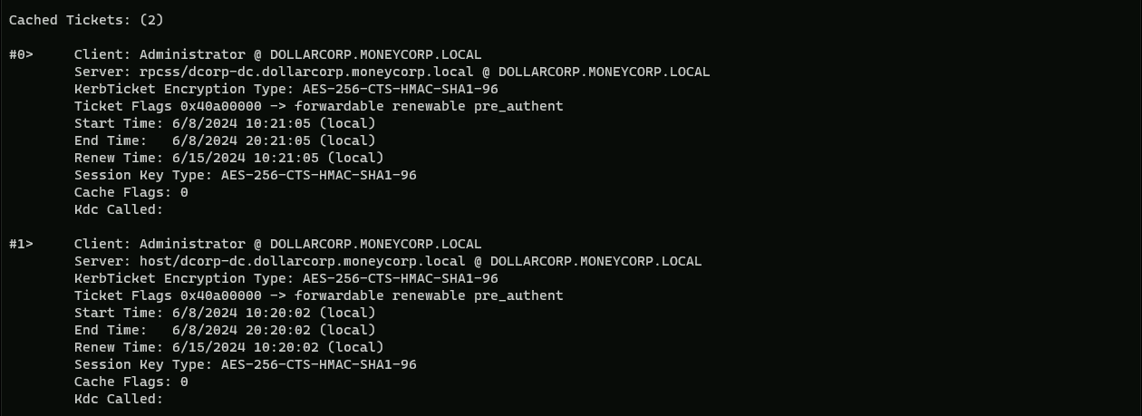 We can check the Cached Ticket to confirm if we are Administrator at the domain.