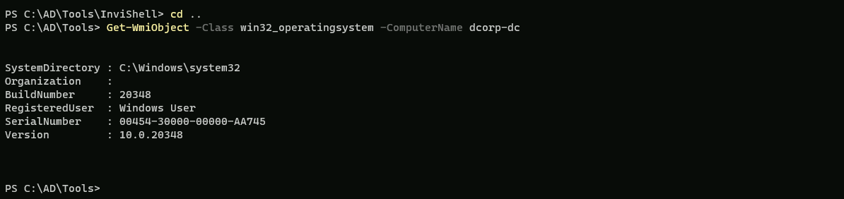Get-WmiObject -Class win32_operatingsystem -ComputerName dcorp-dc