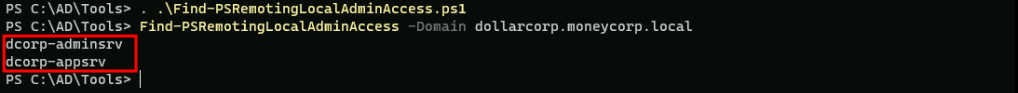 Find-PSRemotingLocalAdminAccess -Domain dollarcorp.moneycorp.local