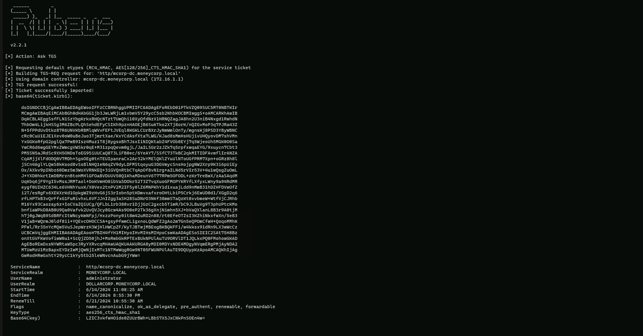 - /rc4: This flag specifies the RC4 key used to encrypt the ticket(dollarcorp.moneycorp.local). In this case, it is