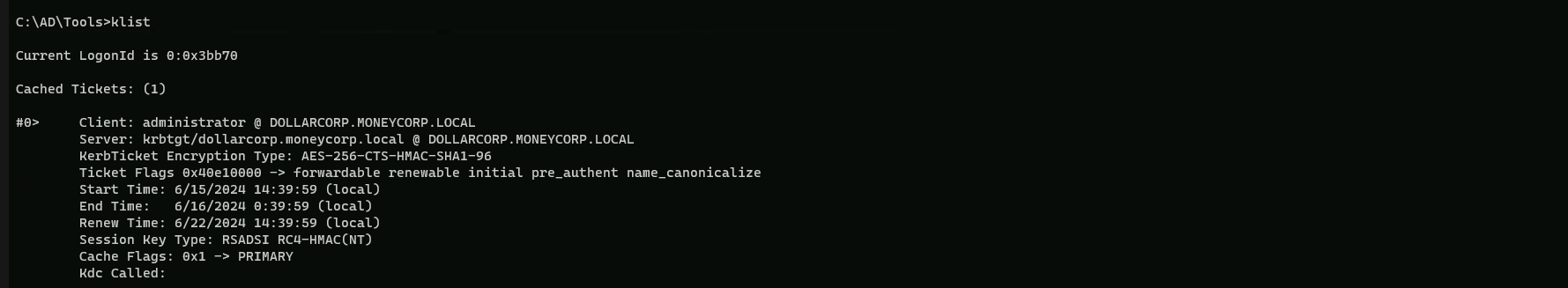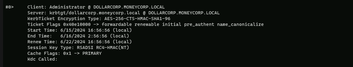 Yes… we can confirm that our ticket as administrator has been imported to our Cached Tickets and we do have access as DollarCorp Domain Admin.