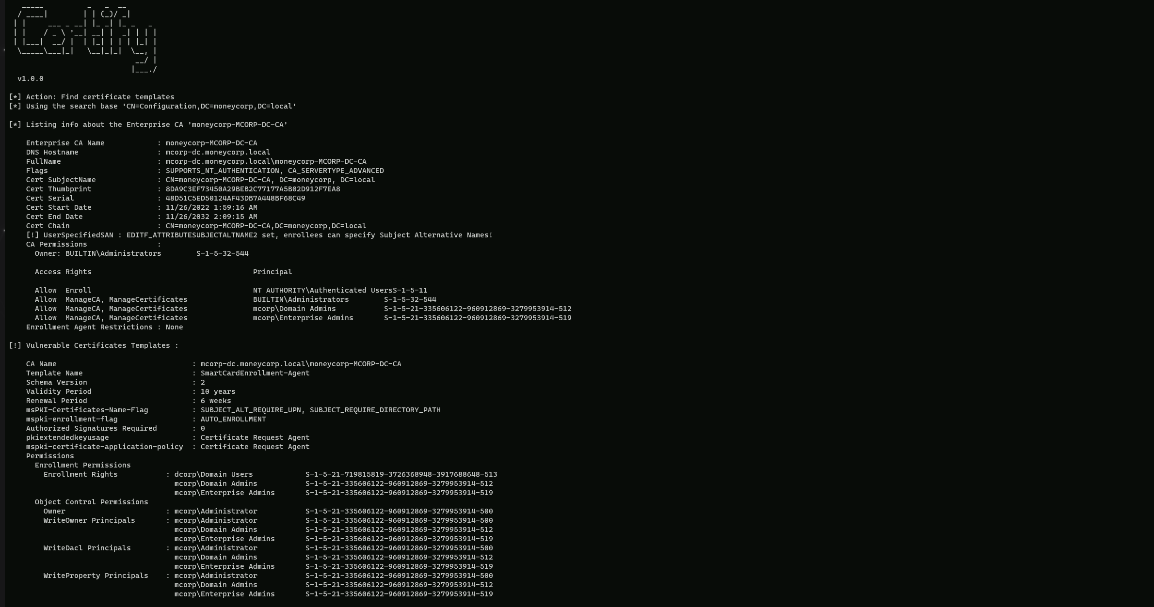[*] Listing info about the Enterprise CA 'moneycorp-MCORP-DC-CA'