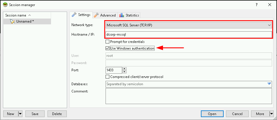 By sing HeidiSQL client, we can login to DCORP-MSSQL using windows authentication of our current user..
