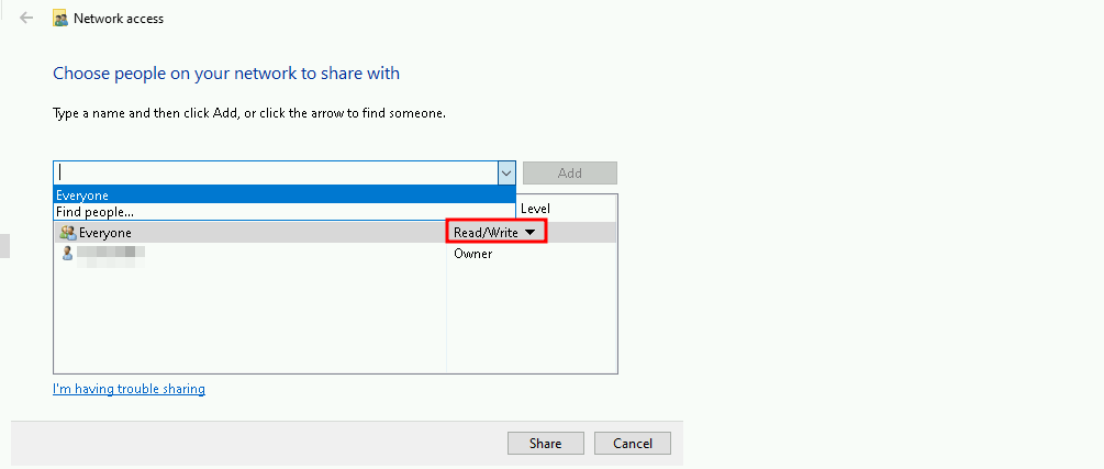 On our attacking machine(Windows), let’s create an SMB share called MyShares with the following configurations and permissions for the share: