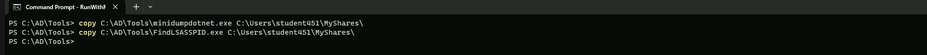 Now let’s add these 2 tools into that shared folder.copy C:\AD\Tools\minidumpdotnet.exe \\DCORP-STD451/MyShares