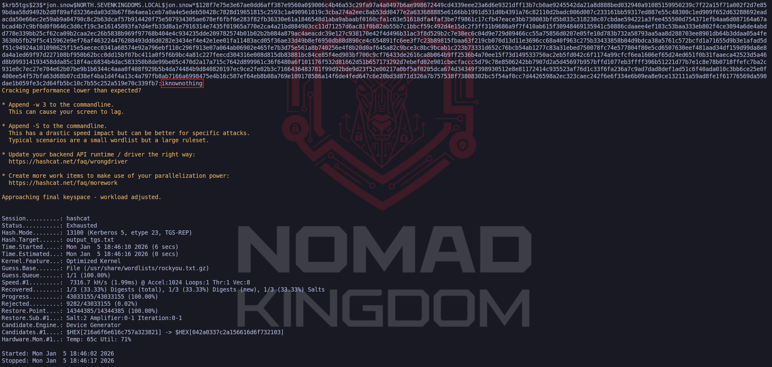 Pass: iknownothingDomain: north.sevenkingdoms.local (