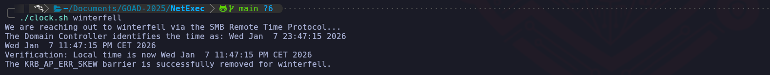 For this, I have create this bash script that will contact the target server and sync the timezone with our attacking machine.#!/bin/bash # High-Level Interactive Kerberos Time Synchronization Script # We accept the target DC via the first positional argument TARGET=$1 # If no argument is provided, we prompt the user to input the target address if [ -z "$TARGET" ]; then echo "Please enter the target Domain Controller IP or FQDN: " read -r TARGET fi echo "We are reaching out to $TARGET via the SMB Remote Time Protocol..." # We initiate the unauthenticated request to the DC's internal clock # We then strip the "Current time is " text and any trailing newline artifacts RAW_TIME=$(net time -S "$TARGET" | sed 's/Current time is //') # We verify that we actually captured a time string before proceeding if [[ -z "$RAW_TIME" ]]; then echo "Failure: We could not retrieve the time. Port 445 may be filtered." exit 1 fi echo "The Domain Controller identifies the time as: $RAW_TIME" # We apply the time shift to the Linux kernel system clock # We use sudo because time modification is a privileged operation sudo date -s "$RAW_TIME" # We finalize by ensuring the hardware clock (BIOS) matches the system clock # This prevents the operating system from rolling back the sync sudo hwclock --systohc echo "Verification: Local time is now $(date)" echo "The KRB_AP_ERR_SKEW barrier is successfully removed for $TARGET."./clock.sh winterfellBy utilizing this script, we have addressed the "Protocol Friction" inherent in the Kerberos design. The five-minute skew limit exists as a critical defense-in-depth measure meant to stop attackers from capturing an encrypted authentication packet and re-playing it later to gain access. By forcing our local clock to match Winterfell, we ensure that every AS-REQ we send contains a timestamp that the KDC perceives as having just been generated.
